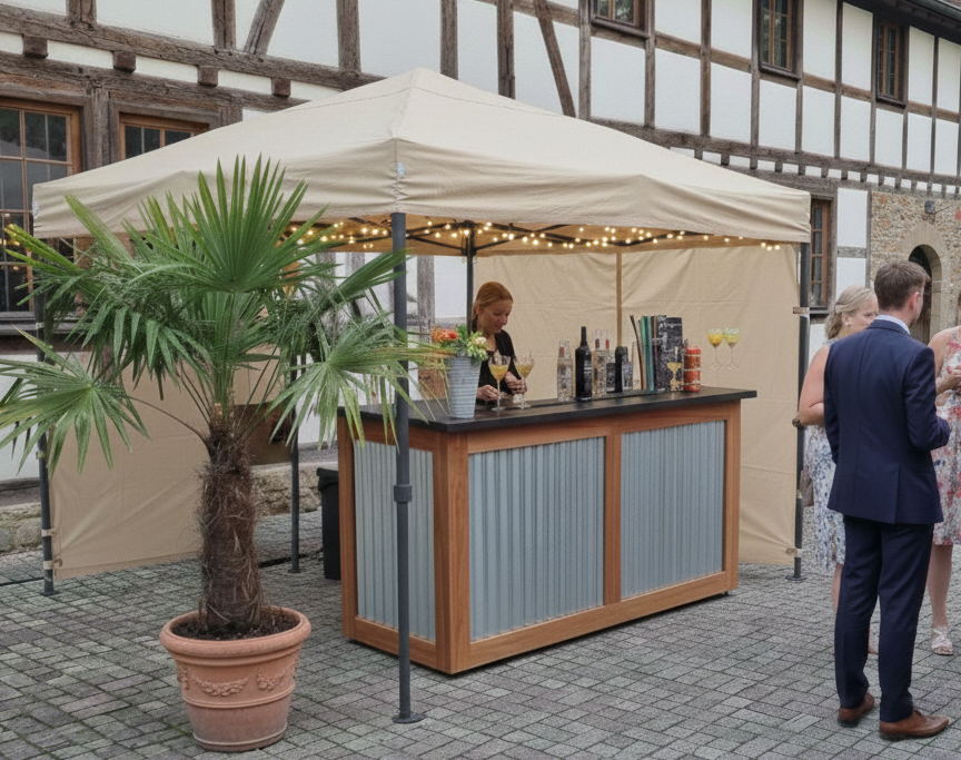 Nicht jedes Event benötigt einen großen Anhänger. Für private Gartenpartys, kleinere Terrassen oder Indoor-Einsätze haben wir unser modulares mobiles Thekensystem entwickelt. Es ist die ideale Wahl, wenn Sie auf kleinstem Raum höchste Cocktail-Qualität und professionelle Optik erwarten.