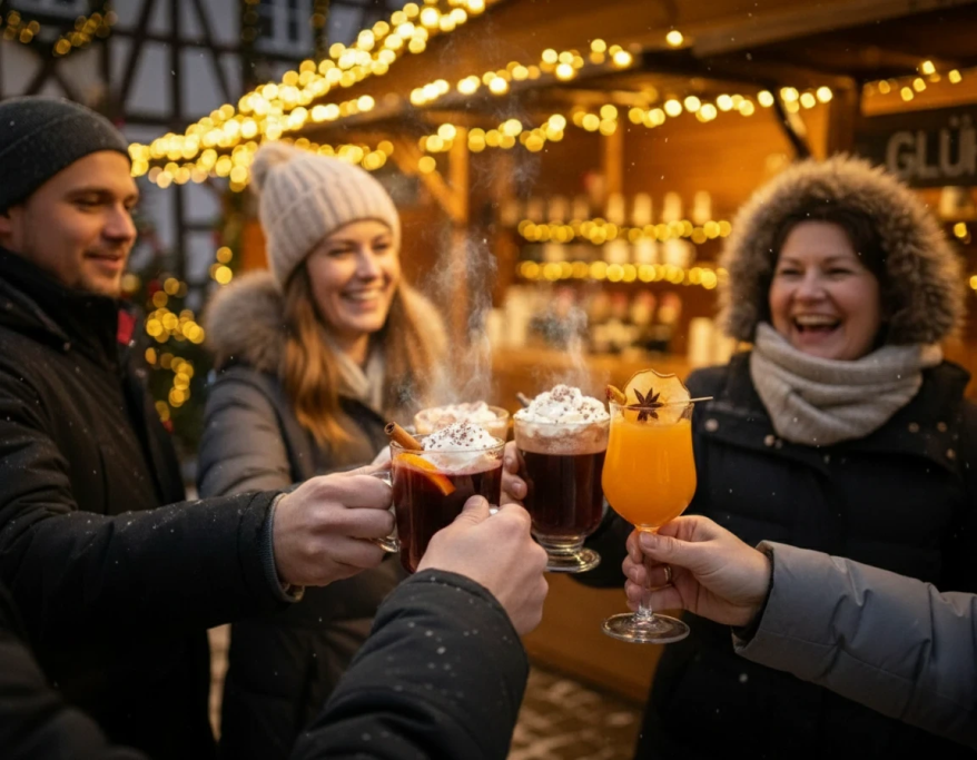 Klassiker: Heißer Glühwein, Punsch, feiner Met und cremiger Kakao mit und ohne Schuss.